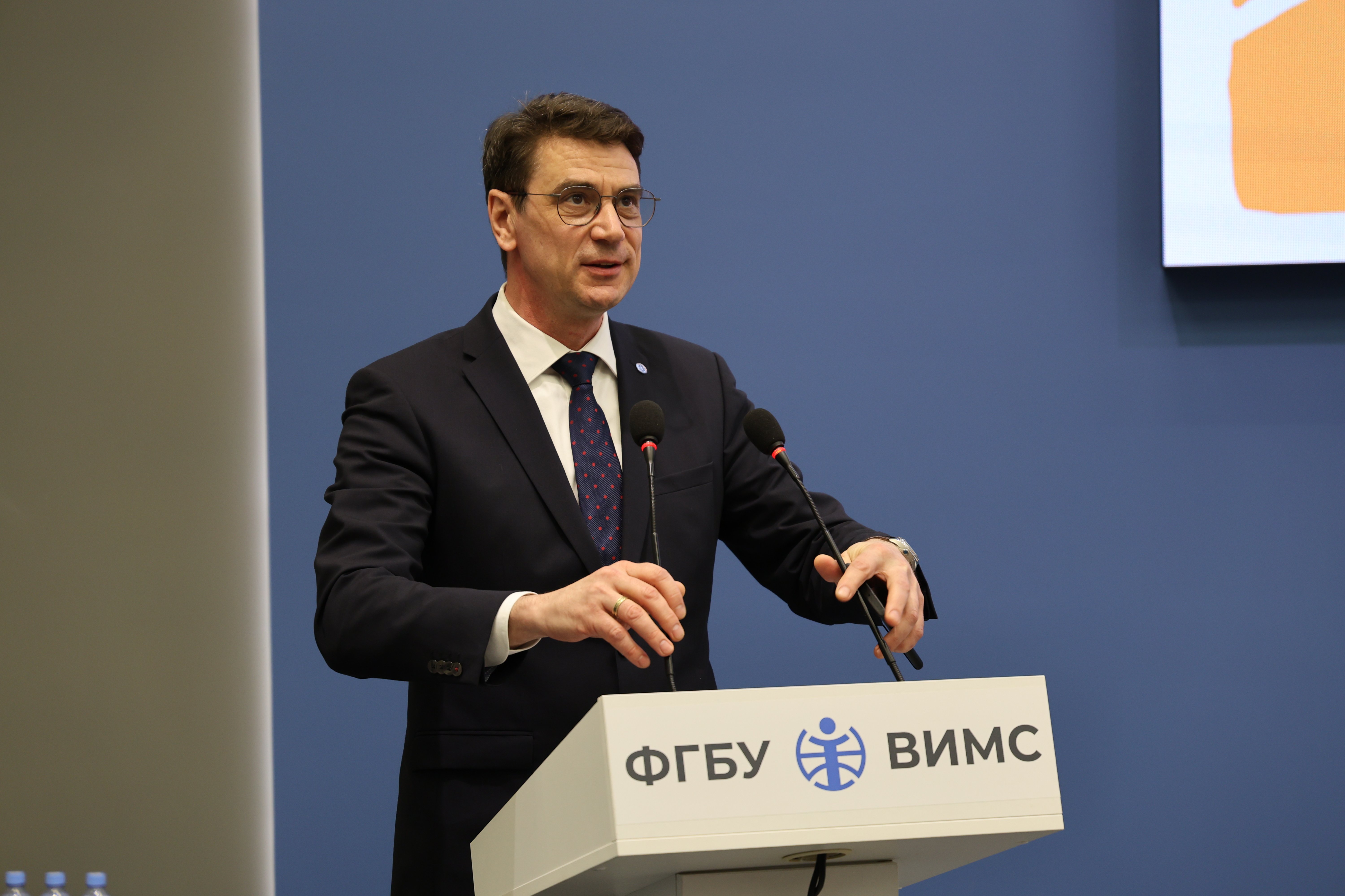 С приветственным словом выступили генеральный директор ВИМС Андрей Анатольевич Коровко и президент Росгео Григорий Анатольевич Машковцев, отметив в своём поздравлении успехи и достижения сотрудников.