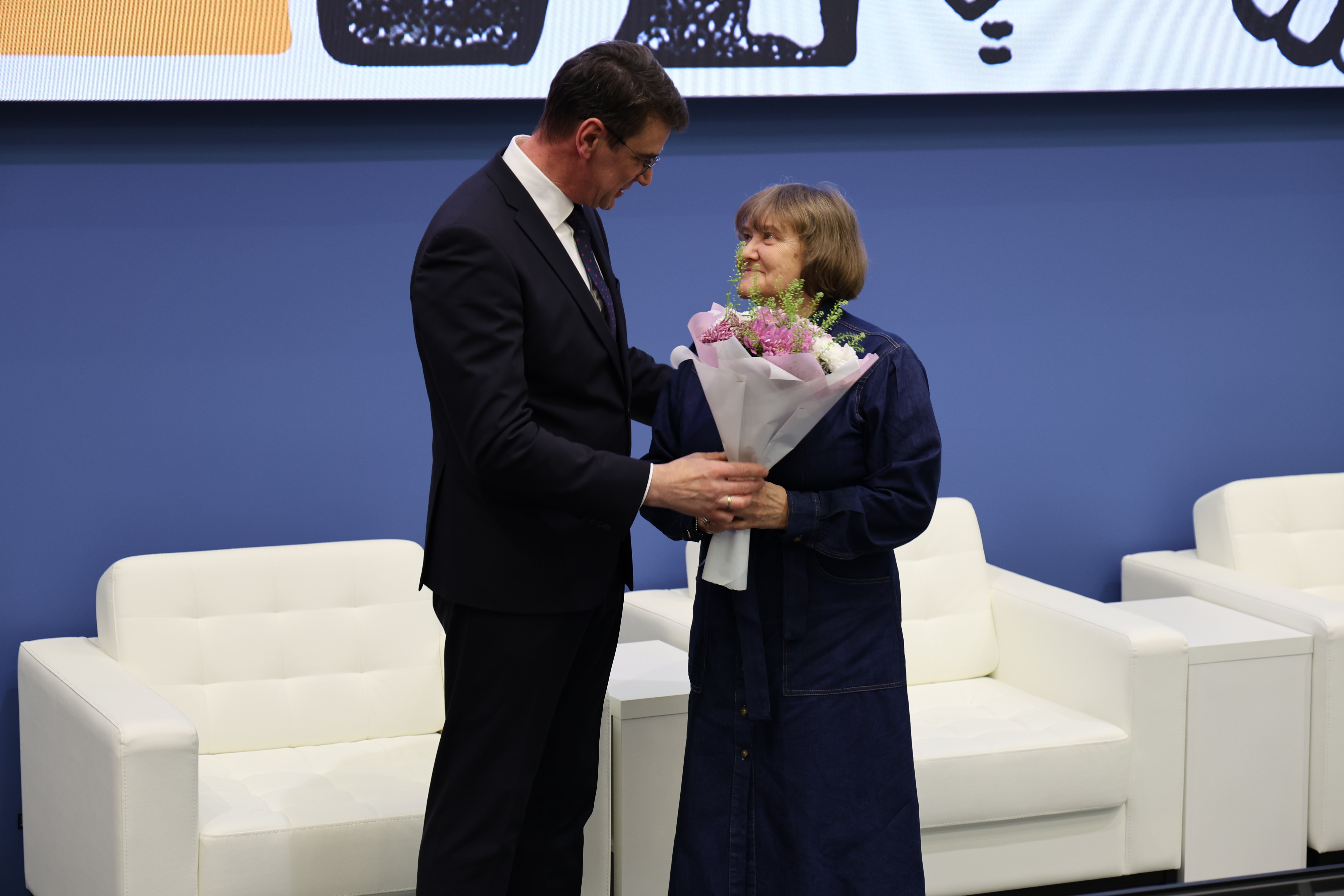 Добрые поздравительные слова в адрес присутствующих прозвучали также от председателя Профсоюза ВИМС Ирины Валерьевны Дергачевой и представителя Молодёжного совета Анны Сергеевны Певзнер.