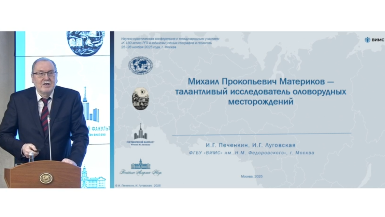 Особый интерес вызвал доклад советника генерального директора — главного научного сотрудника ВИМС Игоря Гертрудовича Печенкина, посвященный жизни и научным достижениям заслуженного геолога, крупного специалиста в области геологии олова Михаила Прокопьевича Материкова.
